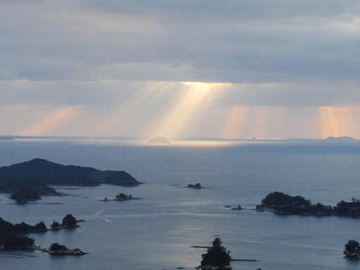 雲の間からまさに後光が差し始めて、モーゼの十戒状態!